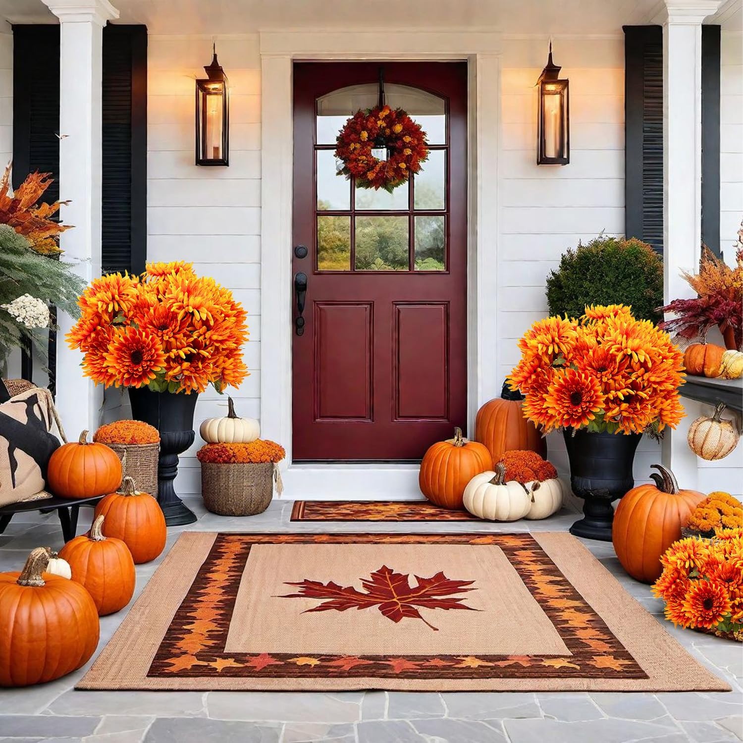 🌼 Lifelike Fall Color in Seconds:Dense silk petals and textured foliage create a plush globe that looks freshly cut. One pot instantly turns your porch, patio, or entry table into the focal point of the season.